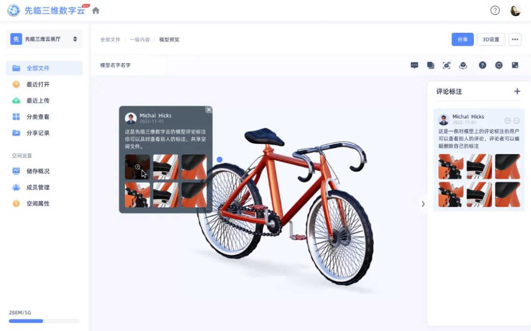 先临三维数字云是一款操作简单、支持在线协作的Web3D轻量化模型互动展示平台,为广大3D内容创作者提供在线存储、3D互动展示、轻量化输出以及模型窗口内嵌展示等功能。用户无需下载软件或APP,即可在电脑端、移动端无死角浏览优质3D内容,拓展视觉维度,轻松实现在线可视化交互和远程协作,让3D数据创建者和用户“突破时空限制,实现云端共享”