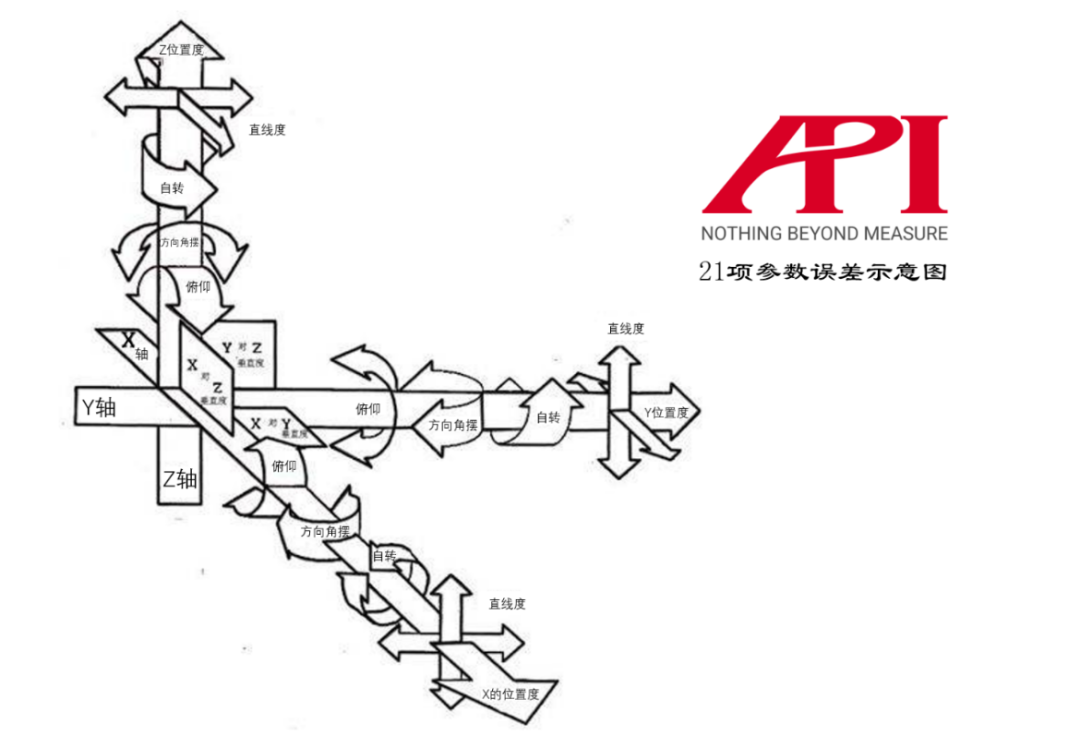 对于三坐标测量机和三轴加工中心,21项误差具体为(请参考图1):