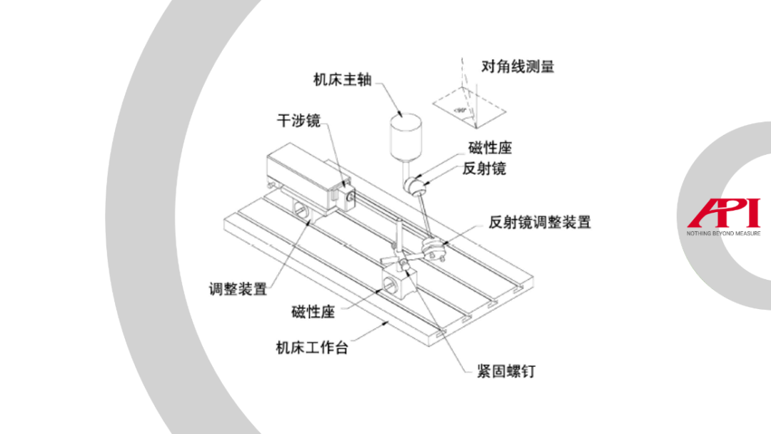 API品牌的XD Laser激光干涉仪有着高集成度和高精度的技术优势,在测量机床体对角线位置精度上非常简单快捷,无需额外辅助工装夹具,只需要在标准配件的基础上增加一个球形反射镜即可轻松实现对光测量。